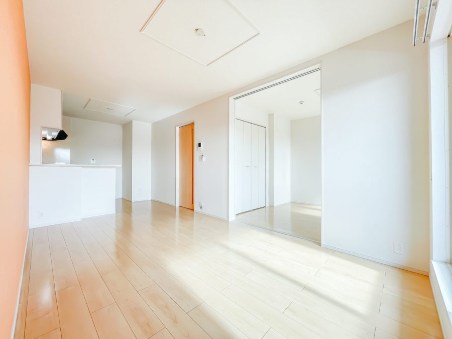 リビングの横にある洋室はあまり独立性は高くないので、ドアを開けっぱなしにして広々リビングにするか、